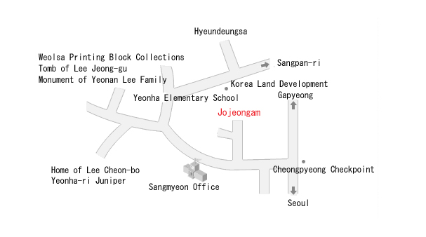 Jojongam depicts all the stone inscriptions, tombstones and platform remains. The tombstones are erected right in front of these stones and there is a daetongmyo for holding sacrificial rites near it. In front of this, the clean and clear Jojongcheon (Riv) flows along the mountain bends. It is said that in the 10 th year of Sukjong in the Joseon Dynasty, Wooam Song Si-yeol inscribed Samusa , which was from the handwriting of the king of the Ming and also inscribed quotes from Hyojong, according to his request to Lee Jae-doo, at the designated location. Accordingly, various scholars such as Lee Jae-doo, Heo Gyeok and Park Hae-myeong came together to inscribe passages from their forefathers and hold sacrificial rites. The reason why Jojongam was erected here was because of Jojongcheon (Riv.). The Korean meaning of Jojong is that several rivers come together to become a sea and also is symbolic of feudal lords having audiences with the emperor. Therefore, this location was established to become a place of worship.