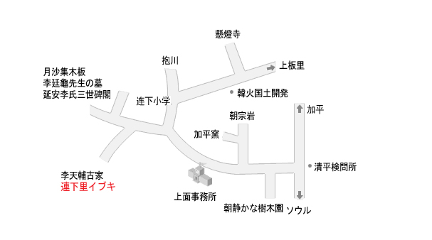 - バス : 東ソウルターミナルまたは上鳳ターミナルで春川行き乗車後、 清平 で 下車