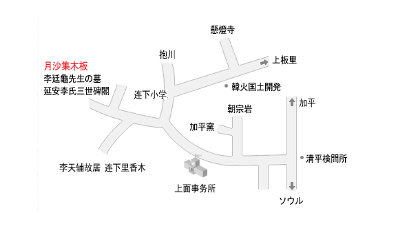 - バス : 東ソウルターミナルまたは上鳳ターミナルで春川行き乗車後、 清平 で 下車